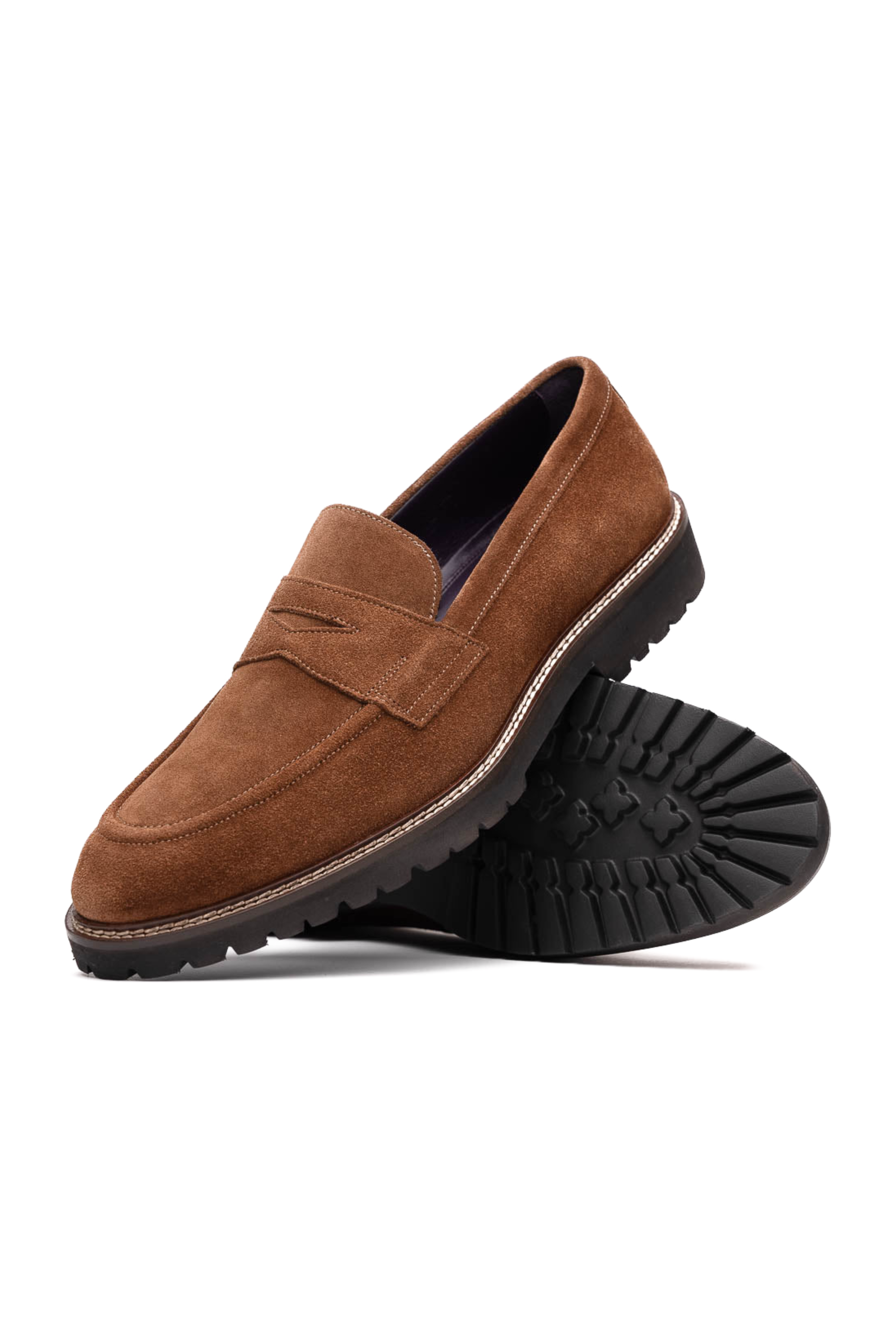Our new Roma in country Italian suede is an updated penny loafer with a modern toe shape. With its clean styling, this elegant classic goes seamlessly from business to dress casual affairs. The Blake Canalino Stitch construction provides a lightweight but durable shoe that is sleek, flexible and comfortable. The new Poron® insole provides extra comfort and support.