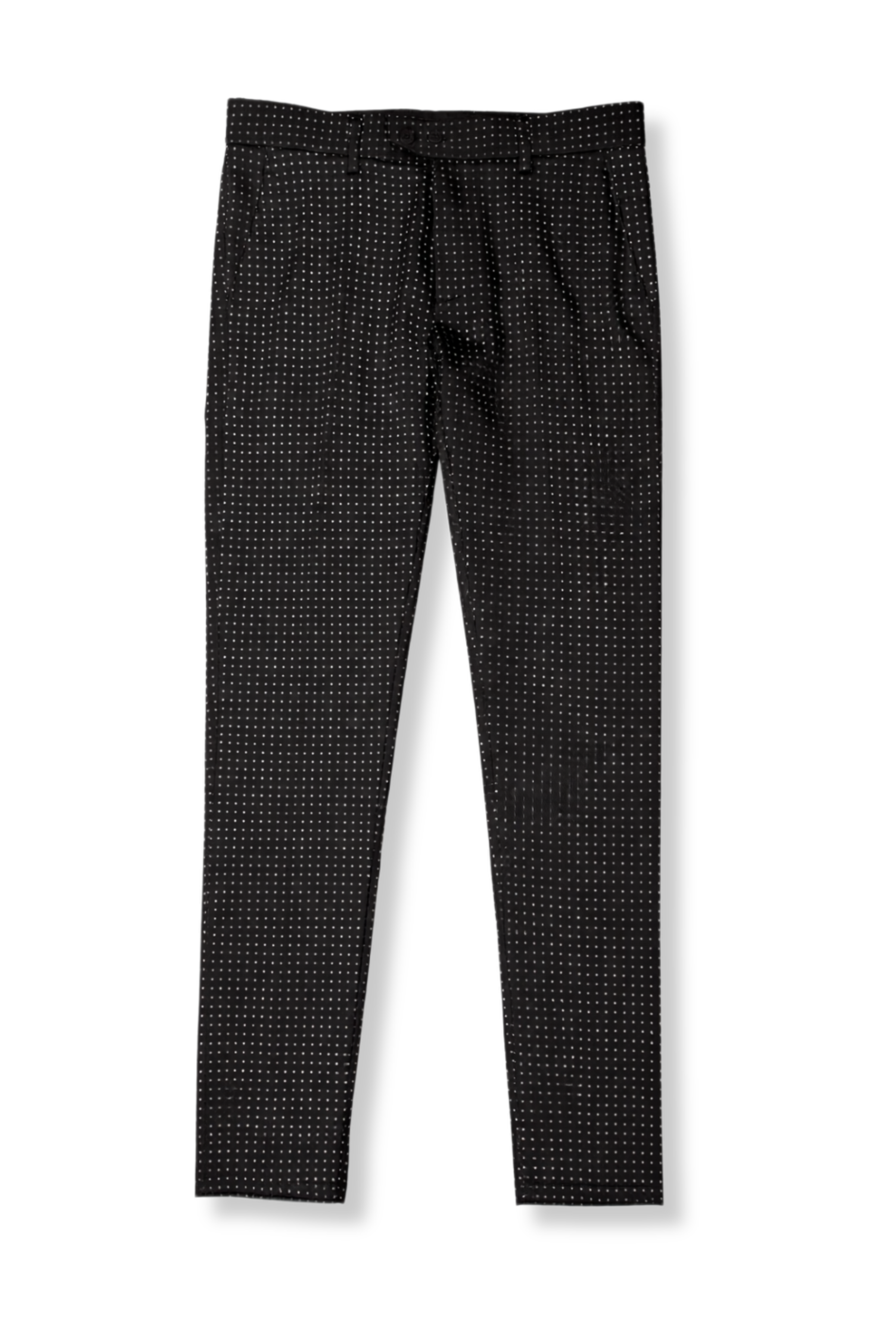 - Zipper and button closure on the waistband