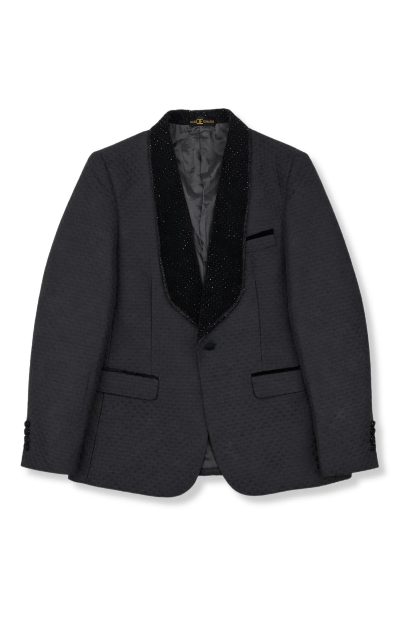 The Dorino Shawl Collar Tuxedo by David Edwards is a sophisticated men’s vested tuxedo featuring a sleek velvet shawl collar with rhinestones. A perfect blend of elegance and artistry for standout formalwear.