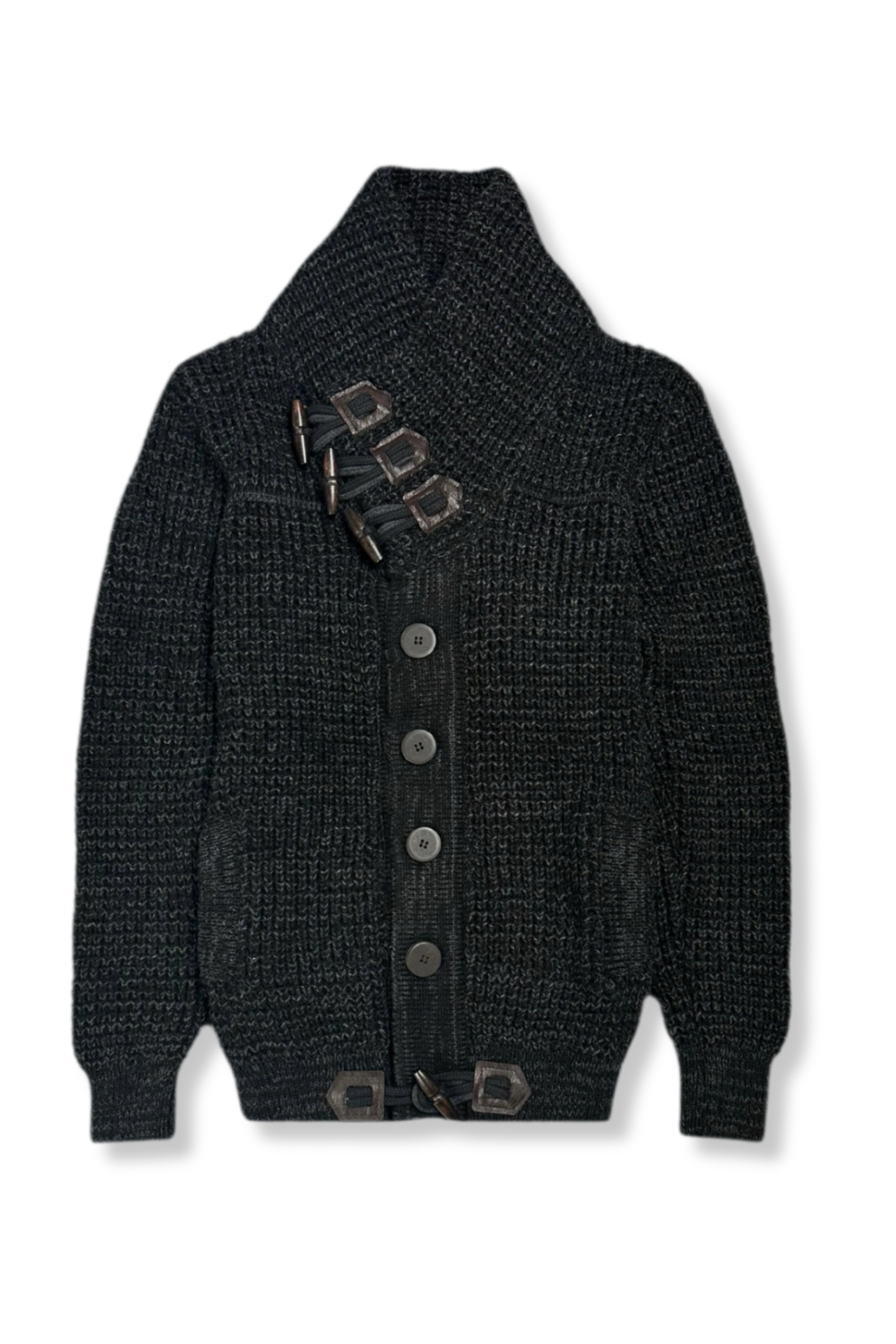 Introducing the Duval Cable Knit Button-Up Sweater – a seamless blend of classic elegance and contemporary comfort by David Edwards. Tailored for the modern gentleman, this men's sweater is a timeless masterpiece featuring a button-up design adorned with three distinctive toggle buttons on the neck area. The Duval Sweater stands out with its rich cable knit texture, enveloped in a thick cardigan made from a luxurious wool blend. Elevate your winter wardrobe with this perfect fusion of warmth and style.
