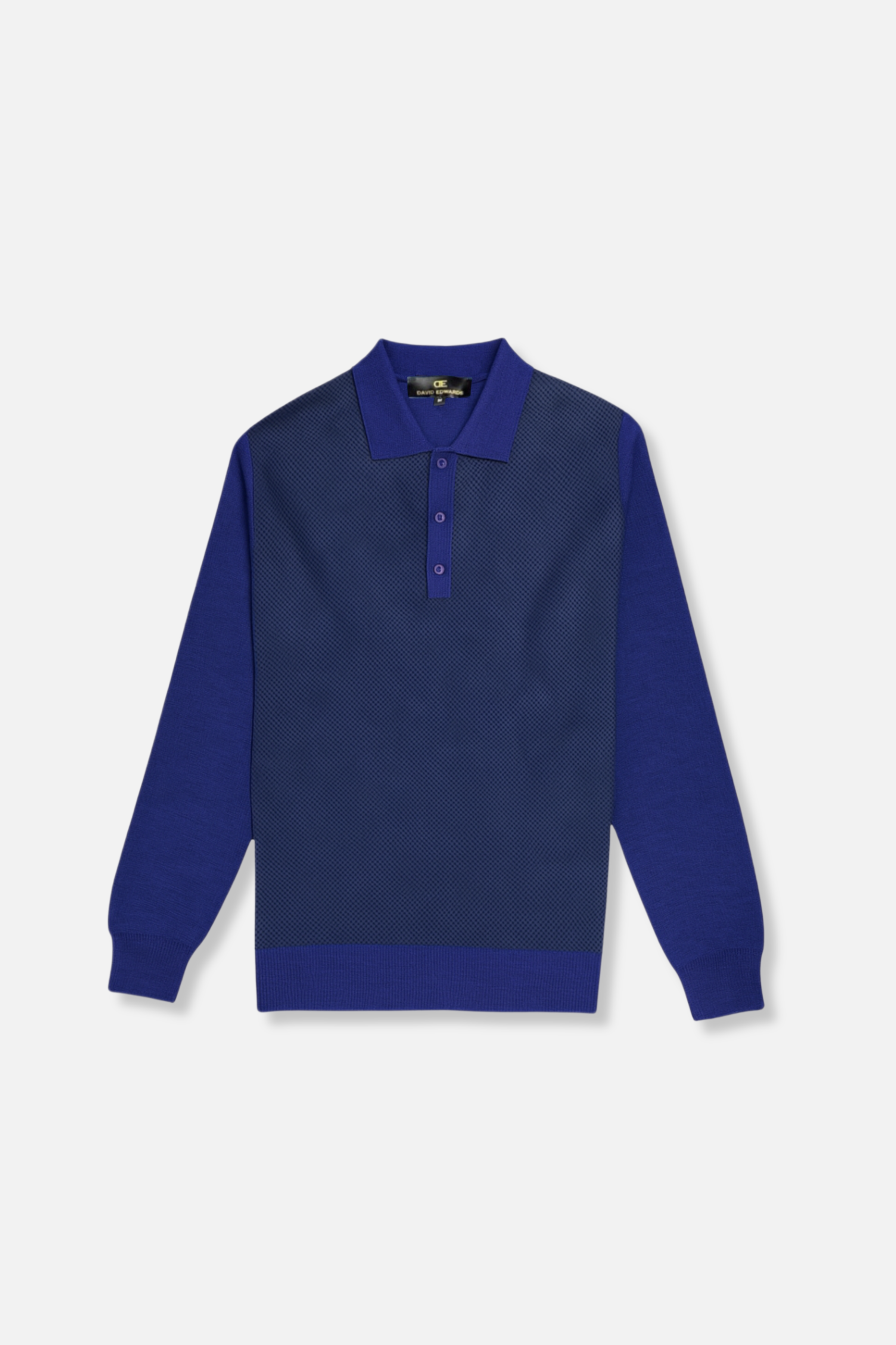 Elevate Your Style with the Dentino Wool Blend Knitted Long Sleeve Polo Sweater by David Edwards