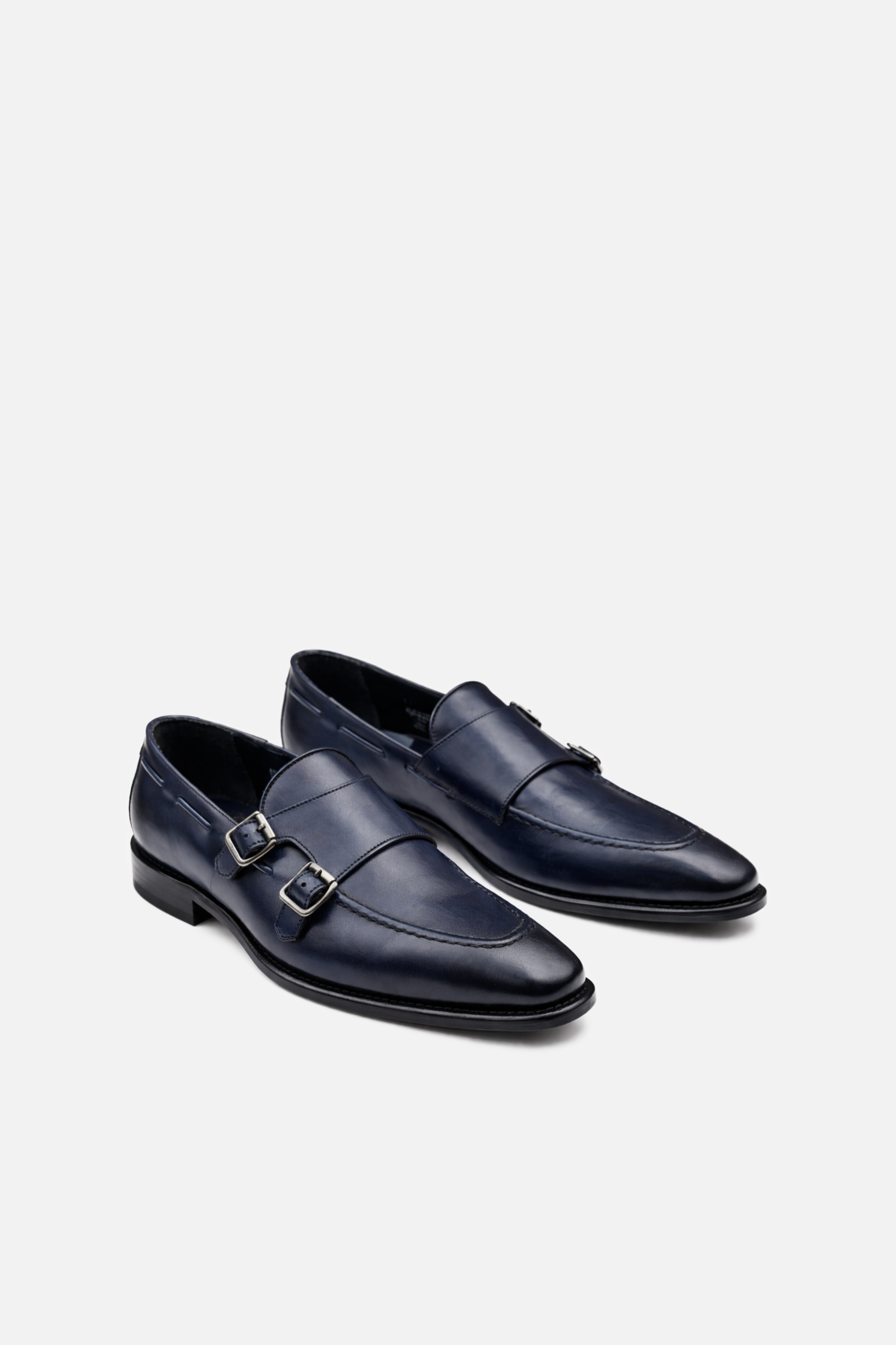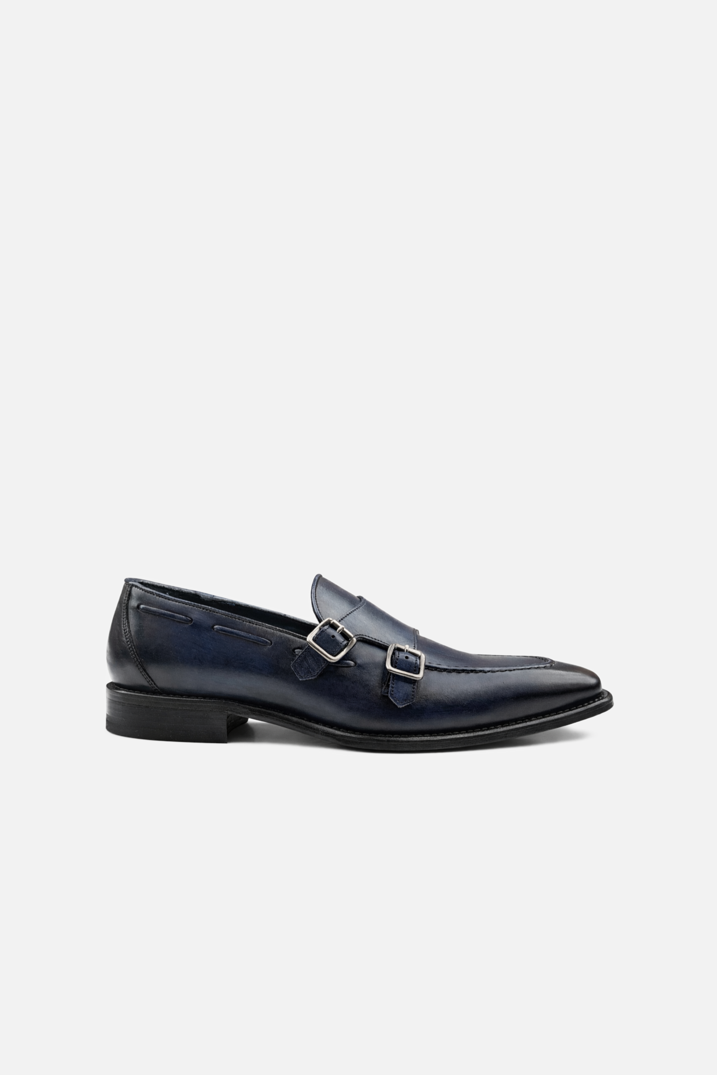 - Stacked heel on a leather sole.